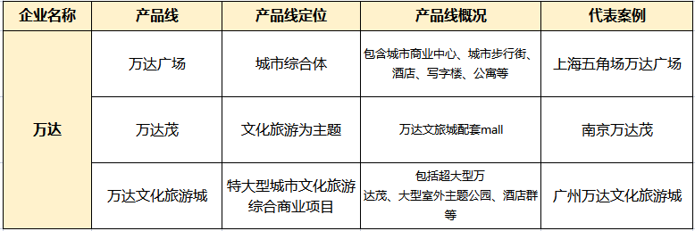 “产品线战略”的目的是促进商业地产市场专业化、标准化、规模化,头部地产名企各具特色:
