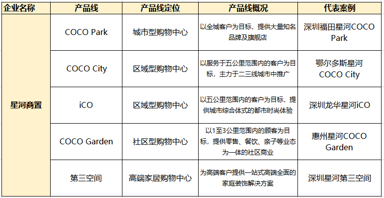 星河商业根据购物中心所在地段区位及针对客户群,细化分为四大类型,形成星河商置最为典型的商业品牌。