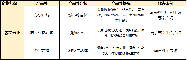 2012年,苏宁置业成立了苏宁广场商业管理公司,全力拓展商业地产,形成了“苏宁广场”、“苏宁生活广场”两大产品系列,以及复合型智慧商业之城“苏宁睿城”。