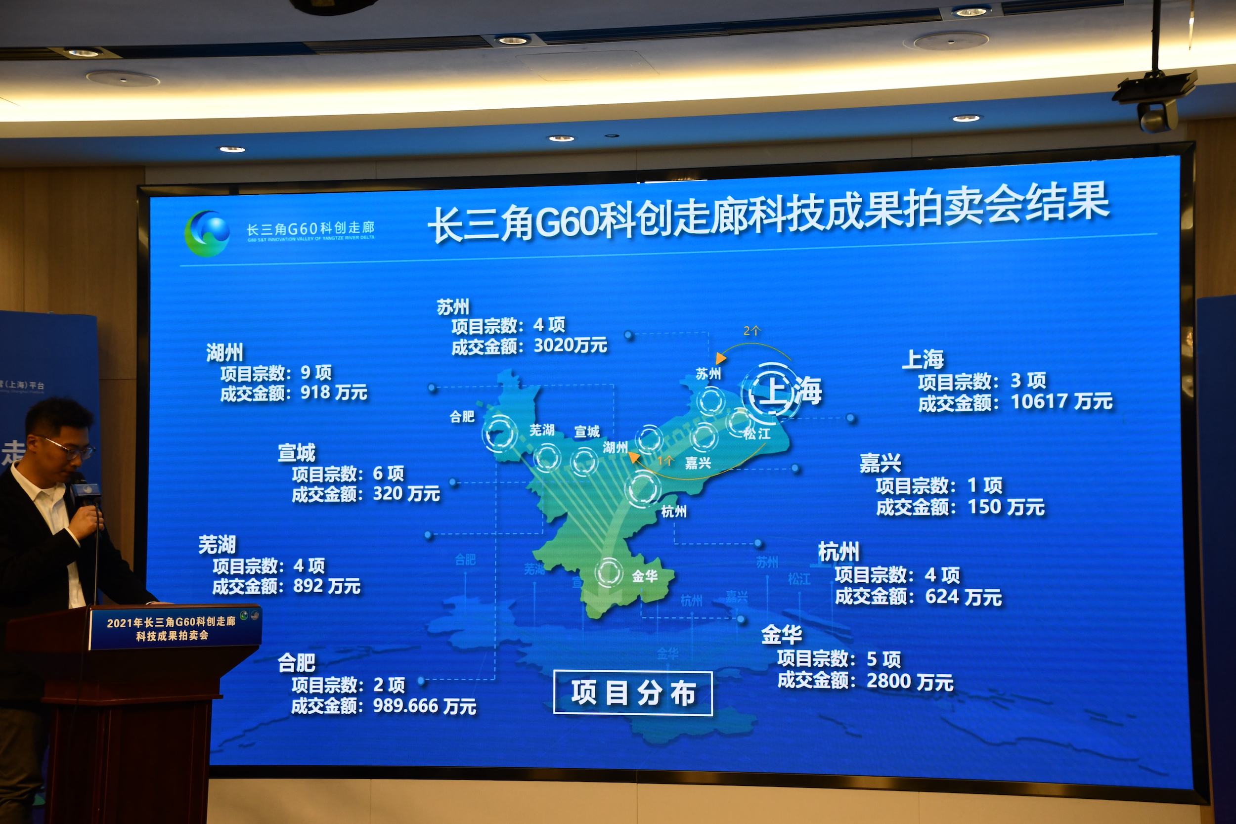 界面新闻从当日举行的第三届长三角G60科创走廊科技成果拍卖会上获悉,本届拍卖会现场成交38个项目,覆盖人工智能、集成电路、生物医药、高端装备、新能源、新材料、新能源汽车等七大新兴产业领域,成交金额2.03亿元。
