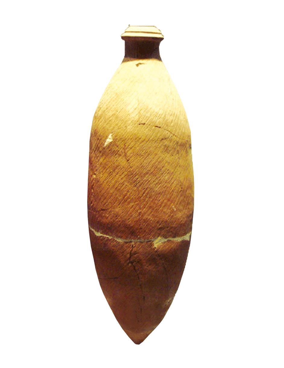 据考证,杏花村遗址的堆积形成经历八个阶段,文明从仰韶文化中期一直持续到商代晚期,跨度达3000年之久。杏花村遗址中,相继出土了数量繁多的酒器品种,包括发酵容器小口尖底瓮,浸泡酒料的泥质大口瓮,蒸粮用的甑、鬲,以及盛酒器壶、樽、彩陶等。其中的小口尖底瓮的发现,被考证是中国古代最早的发酵容器,这说明六千多年前的仰韶先民已经开始掌握了人工酿造谷物酒的初级技术。它的出现,为探讨中华原始酒文化的起源找到了珍贵的文物标本。
