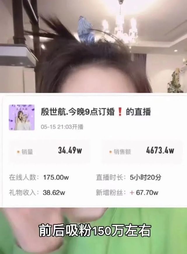 仅订婚仪式当晚,殷世航单场直播的销售额高达4673.4万元,按照35%的佣金计算,仅直播带货这一项,殷世航就净赚1600万左右。