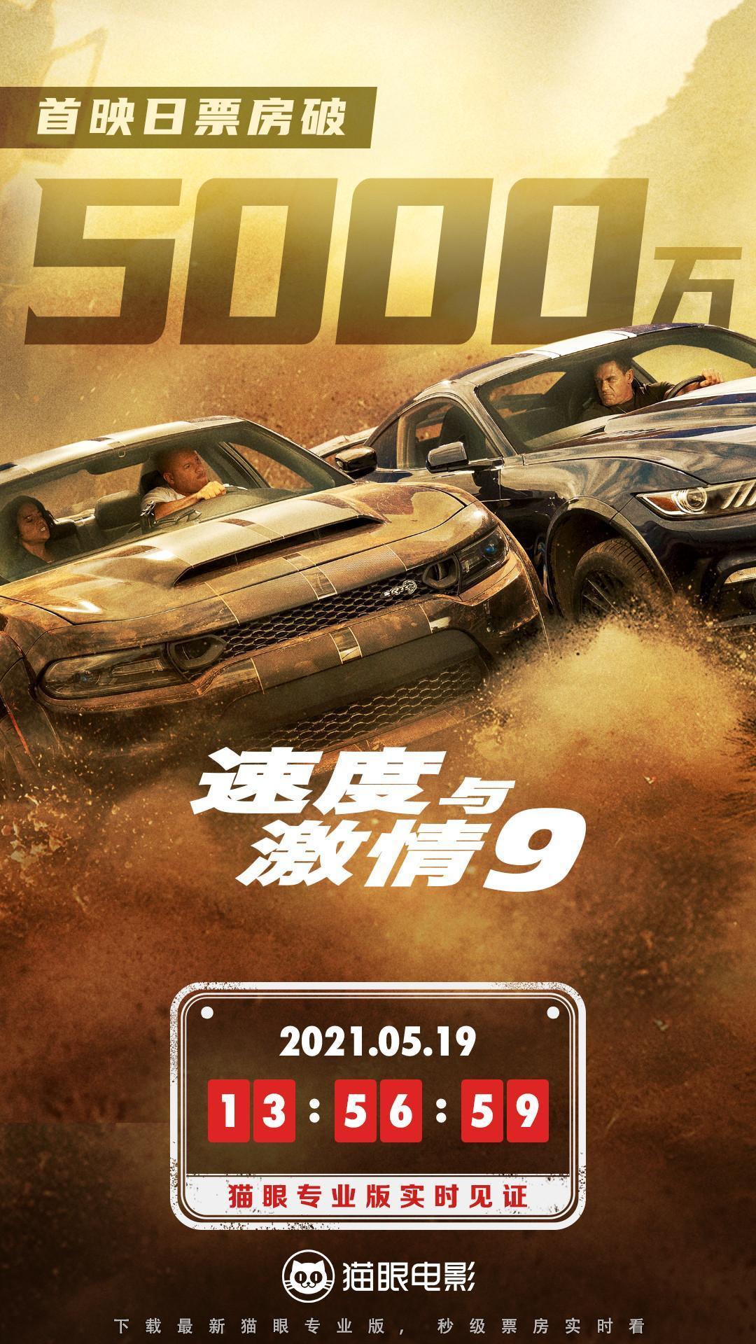 据@猫眼专业版 微博5月19日消息,猫眼专业版实时见证,5月19日13:56:59,《速度与激情9》首映日预售票房破5000万。