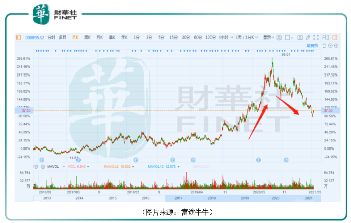 其中,双汇发展(000895.SZ)的股价曾在2019年8月底至2020年8月底的一年时间内飙涨了2倍。