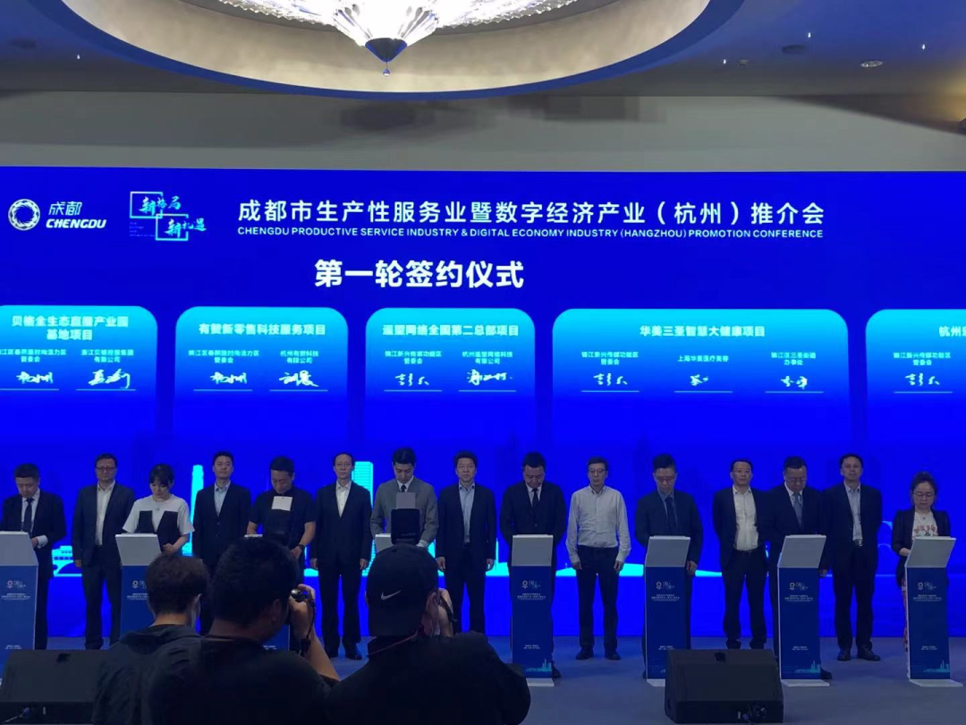 5月19日下午,成都市发改委党组成员、副主任朱平在杭州参加由成都市人民政府举办,成都市投资促进局、锦江区人民政府、新津区人民政府承办的“共筑新格局 共享新机遇——成都市生产性服务业暨数字经济产业(杭州)推介会”。