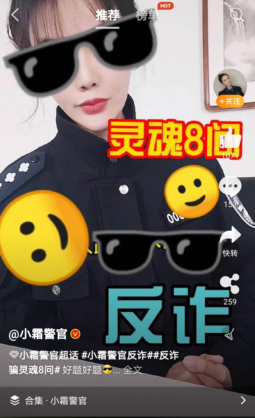 合肥市肥西县公安局在微博发布了《反诈骗灵魂8问》,甜美的小霜警官用犀利的语言直击人心:
