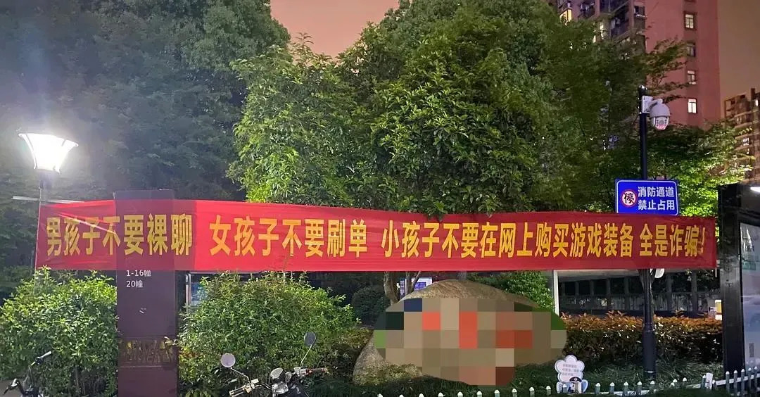 小区门口挂一条横幅,润物细无声但直击人性的弱点,连小孩都不“放过”↓