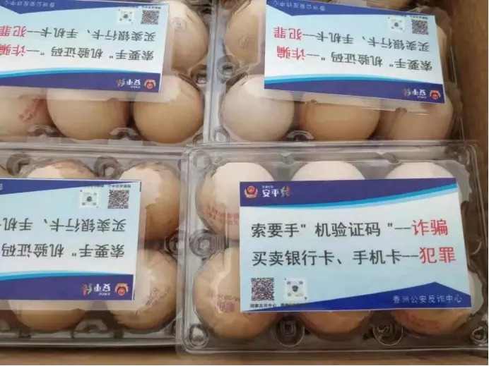 还有民警蜀黍将反诈宣传标语印在鸡蛋上,在街头免费发放……这些鸡蛋承担着“反诈宣传”的光荣使命,因此被网友们亲切地称为“反诈蛋”↓