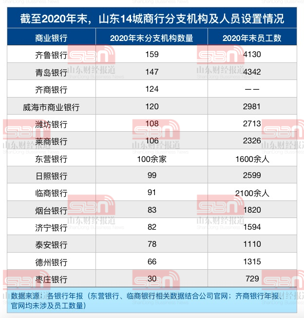 网点数量:齐鲁银行最多 枣庄银行最少