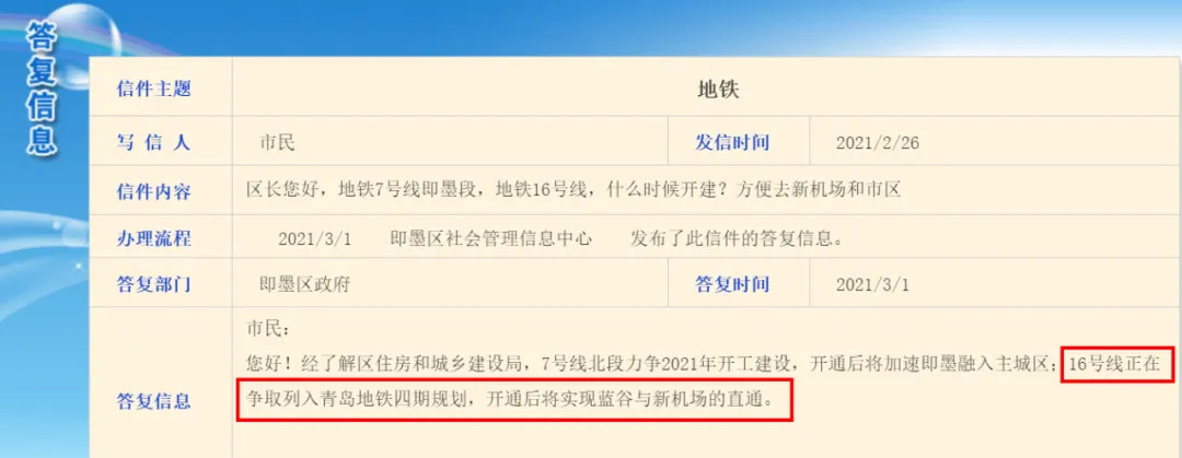 当天,官方还给出消息称,16号线正在争取列入青岛地铁四期规划,开通后将实现蓝谷与新机场的直通。