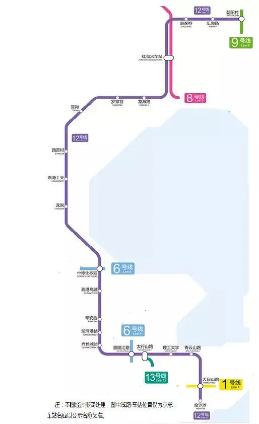 从目前已披露的官方消息来看,青岛地铁12号线(规划)起点站为朝阳村站,终点站为金沙滩站,全程共21站。天目山路站可与1号线换乘,嘉陵江路站可与13号线换乘,中德生态园站可与6号线换乘,红岛火车站可与8号线换乘。