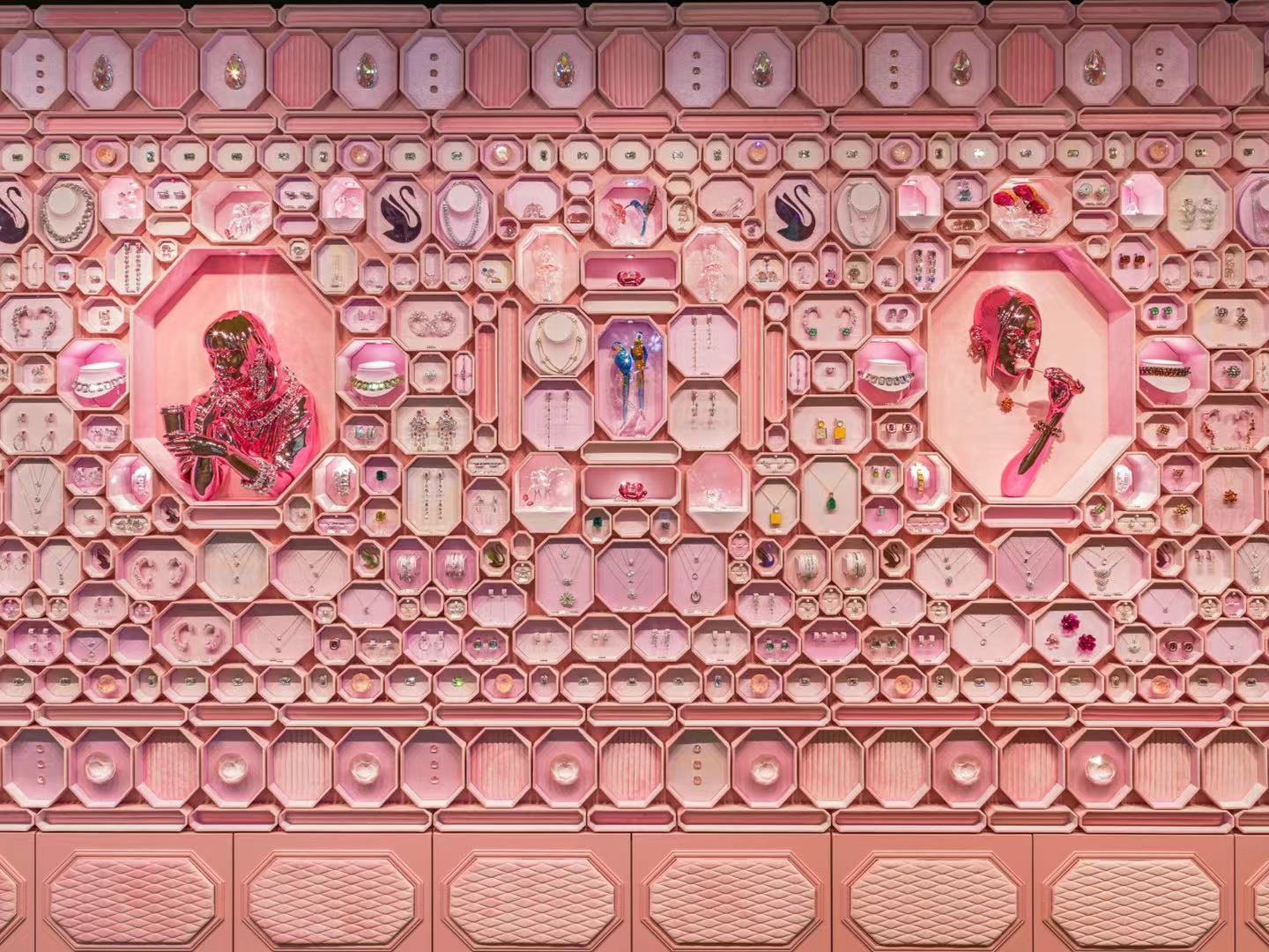 Instant Wonder新零售空间采用了充满活力的色彩和纹理搭配创新材料,彰显出大胆好奇和自我表现的鲜明风格。八角形是Instant Wonder门店的重要特征之一,外部八角形寓意“重生、无限、革新”以及施华洛世奇经典的八角形切割,充满科技感的棱角分明则与天鹅本身的柔美达成艺术平衡。