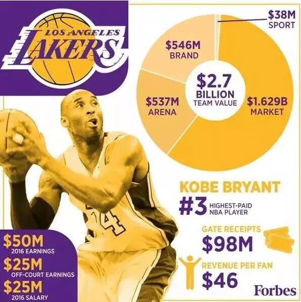 这些无形资产即使在科比退役之后除了成为湖人的品牌故事内容外,依然会帮湖人队赚钱。一方面科比退役给湖人引进新的球星和新秀流出了巨大的空间,另外一方面,也给观众和球迷留下了巨大的期待和想象空间,大家都渴望看到湖人队后科比时代的风采和表现。