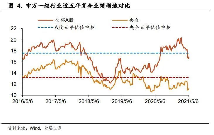 近年来,国家指导央企不断健全市场化经营机制,持续激发内生动能,带动业绩表现突出。2016-2020年这5年间,央企的业绩复合增长率高达16.6%,要远高于全部A股7.8%的平均水平。