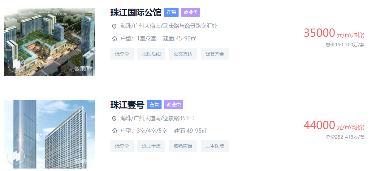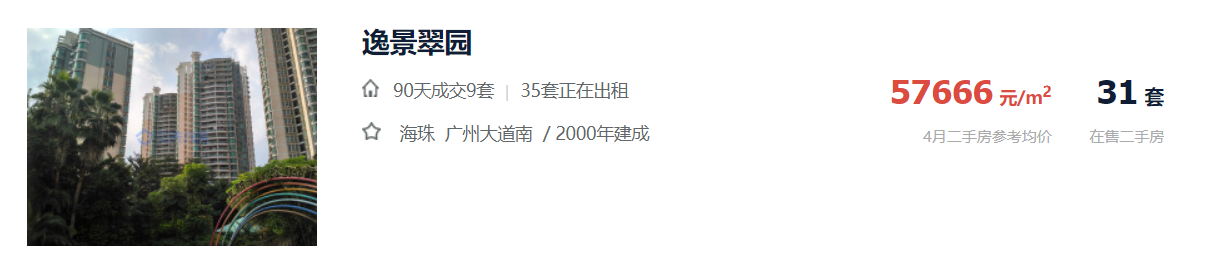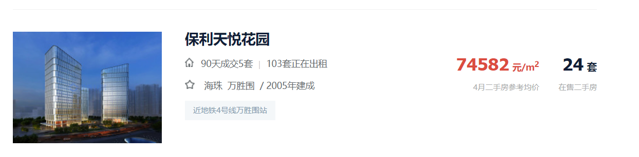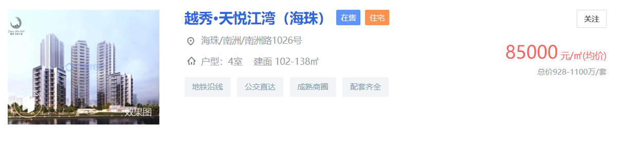 正是因为区域一手缺货较为严重,目前海珠区大部分在售住宅房源均价6万/㎡以上,还有一些体量较小的高端的项目,如11万/㎡ 均价的时代大家,所以促使海珠整体一手需求转至二手楼市。