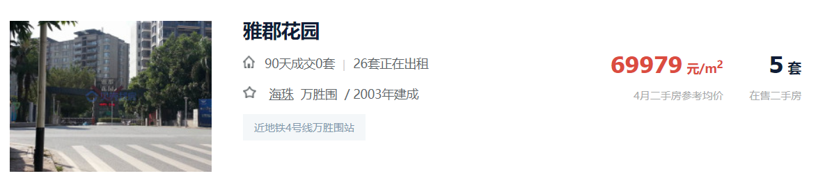 片区新房稀缺,二手房价可参考周边的雅郡花园,均价接近7万/m²。