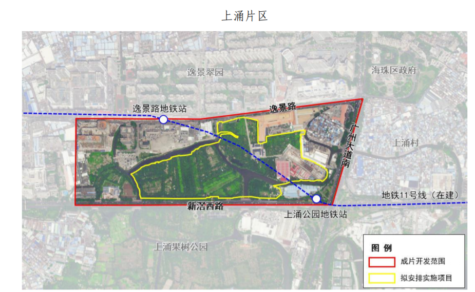 片区范围包括琶洲中二片区、琶洲南及石榴岗片区、渔轮厂片区、上涌片区、沥滘村片区。其中,除了琶洲南及石榴岗片区外,其余四地都设有居住用地。