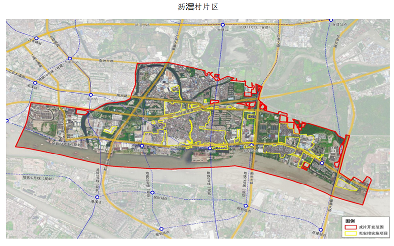 片区内有地铁3号线与广佛线交汇,地铁2号线洛溪站、南洲站分布在片区外侧。
