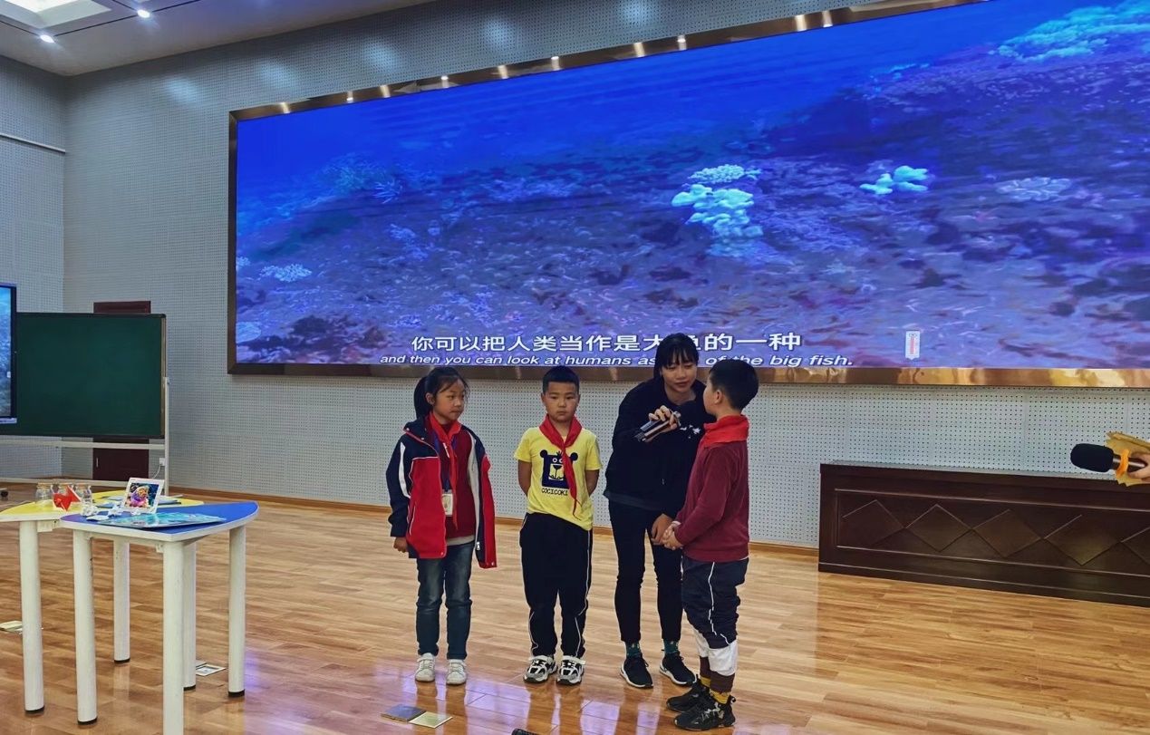 3月的时候,学校里第一次被蓝色包围。蓝色是大海,深色的浅色的蓝,丰富饱满的蓝,孩子们就在大山里,透过蓝色的世界,看到了彩色的鱼,看到了千奇百怪的珊瑚和海藻。