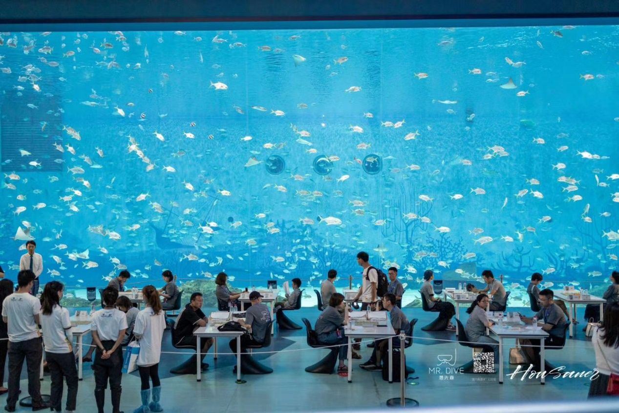 成都人爱打麻将下象棋,她们在海洋馆举办水底麻将大赛、棋王争霸赛,潜水员在海水里鱼群中打,麻友们就在岸上背靠着巨大水族箱打,打累了还能看看风景,看看鱼,鱼也去看看比赛的人。既拉风,又出圈。