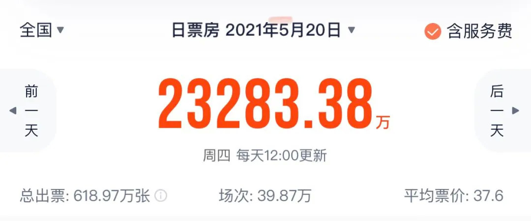 根据灯塔专业版,5月20日票房达2.34亿元,观影人次突破621万,成就“最佳工作日520”。