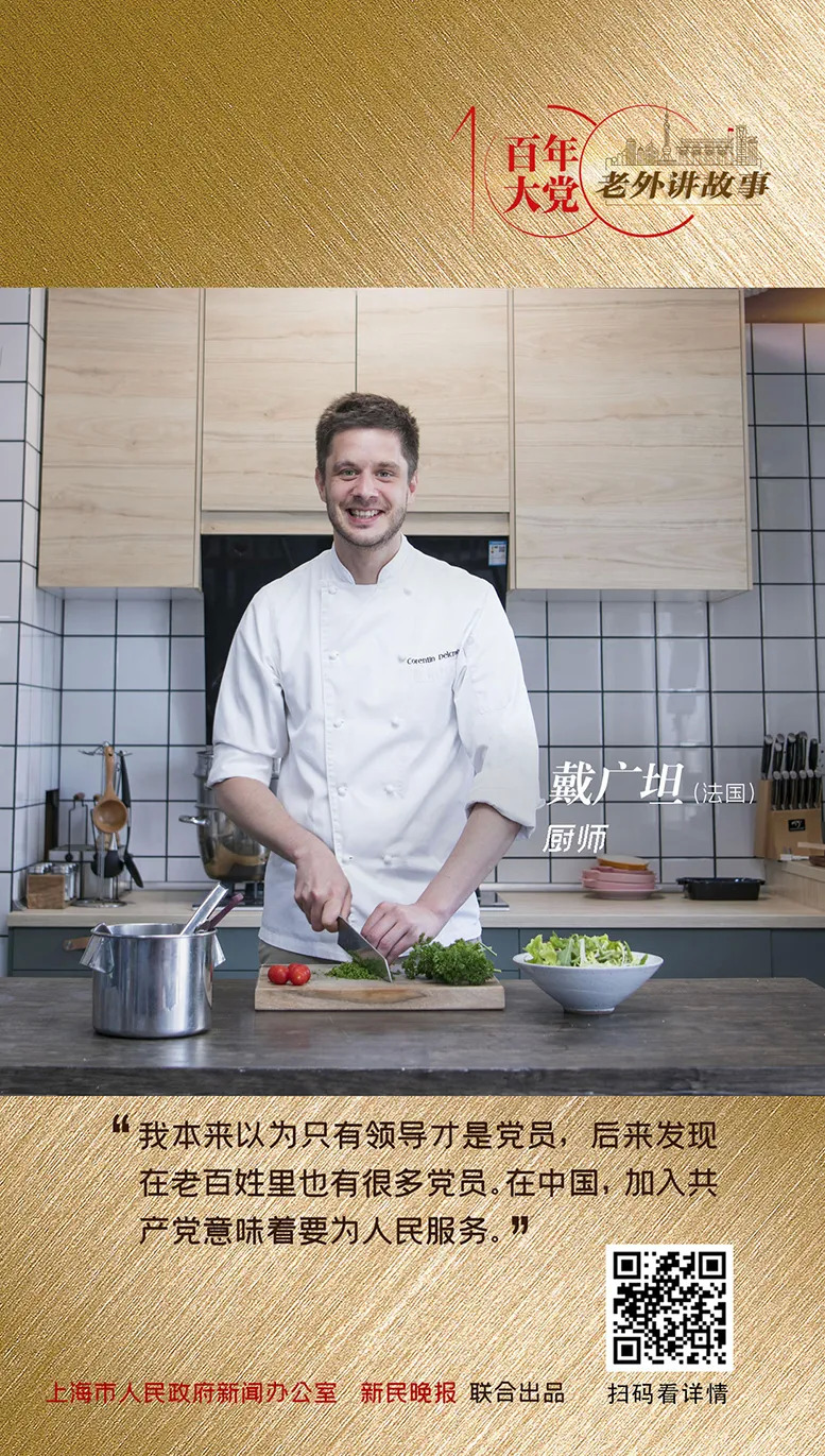 帅气阳光、爱笑的戴广坦曾在法国的米其林餐厅工作,现在每天用“二声”普通话在网络社交平台教人做法餐和融合菜,短短几年就成为拥有百万级粉丝的网红厨师。“我的美食生涯最早就是从中国开启的。现在,中国快速发展的新媒体技术又一次成就了我。”