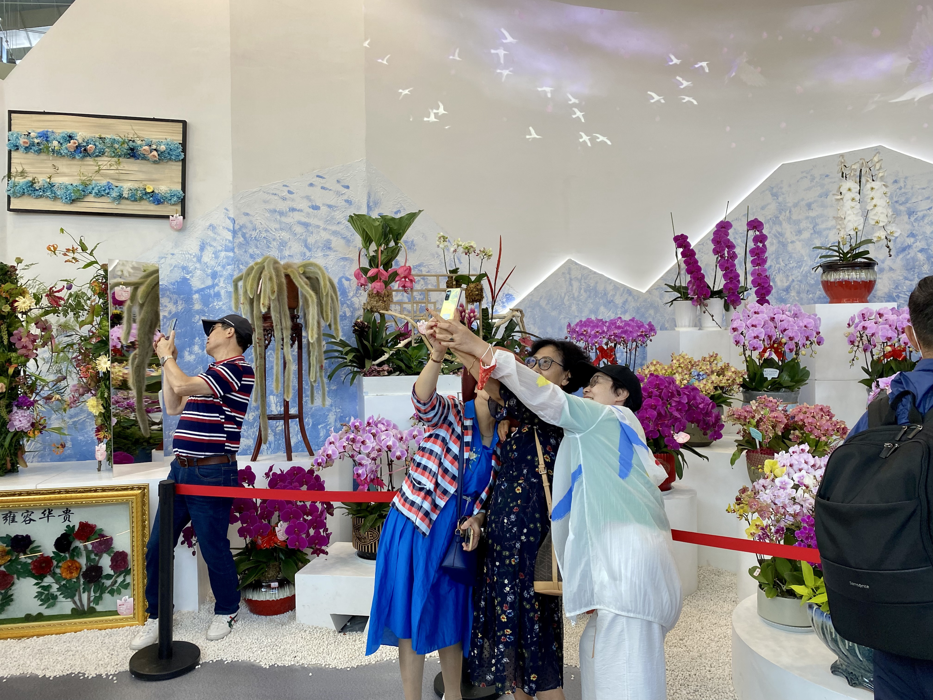 先跟“白玉兰”拍照,再跟“山丹丹花”合影,紧接着还有水仙、百合、蝴蝶兰……除了自拍、合影还有Vlog拍摄、视频直播,位于崇明的花博会园区,当之无愧成为上海人均拍照密度最高的地区。