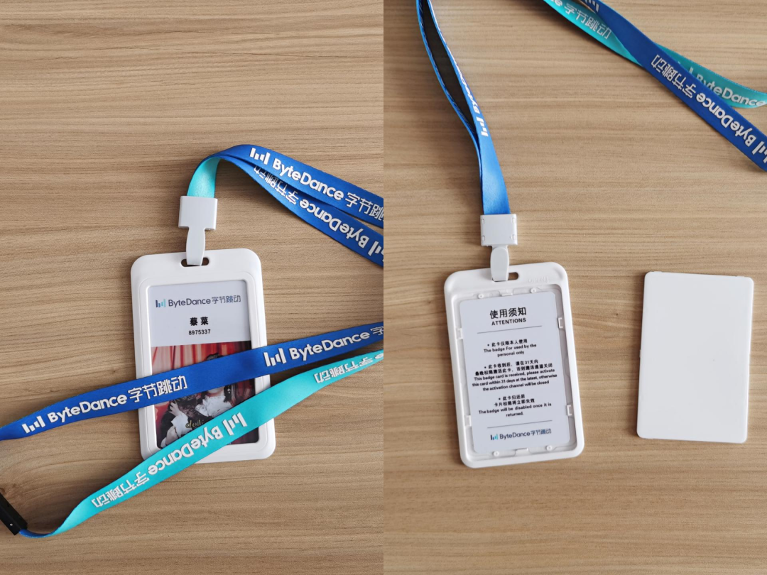 星星表示:“字节跳动的正式工卡应该两面都是一样的,都是字节跳动公司名加姓名、编号和个人图像。但一般入职前一周工牌没有办下来,或者没有带工牌的时候,可以领一个临时工卡暂时使用。临时工卡就只有使用须知的文字说明,没有姓名、编号和照片。”
