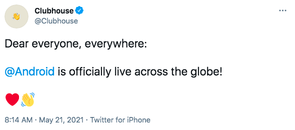 5月23日消息,Clubhouse在推特上宣布,Android版Clubhouse已正式上线。
