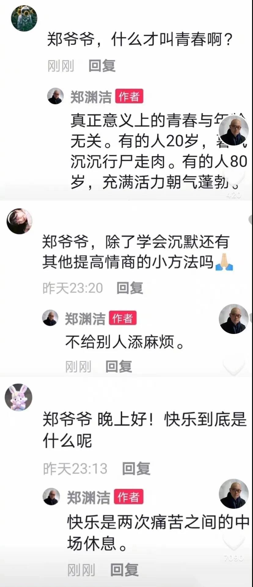 如果你不开心了,可以去郑渊洁的微博或者抖音看一看,诸如此类的睿智发言不胜枚举。