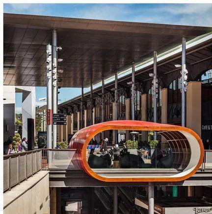 ▲巴塞罗那的 La Maquinista 容纳了200余个零售商户,是当地最大的购物中心。在这个大型生活方式中心里,有多个功能细分、位置不同的休息区,在设计的合理性与实用性方面都值得借鉴。La Maquinista 的公共休息区可以由外到内来分析。在其中一个入口处,La Maquinista 设置了一个室外儿童乐园,内有座椅,供家庭客群使用。此外,La Maquinista 还在户外走廊安置了一个能遮阳的休息区,软沙发座椅也因此能保证避免天气变化带来的损耗。另一完全开放的休息区则与以上不同。座椅采取了编织材料,较为耐用,也能较好地适应天气变化。其室内休息区也同样有着不同应用场景。中庭利用半圆形座椅打造了一个能汇聚消费者的休息区,既能改良中庭面积,也能作为汇聚消费者,展现购物中心客流量的工具。(节选自《如何把购物中心休息区打造成引流器?这里有一份指南》)