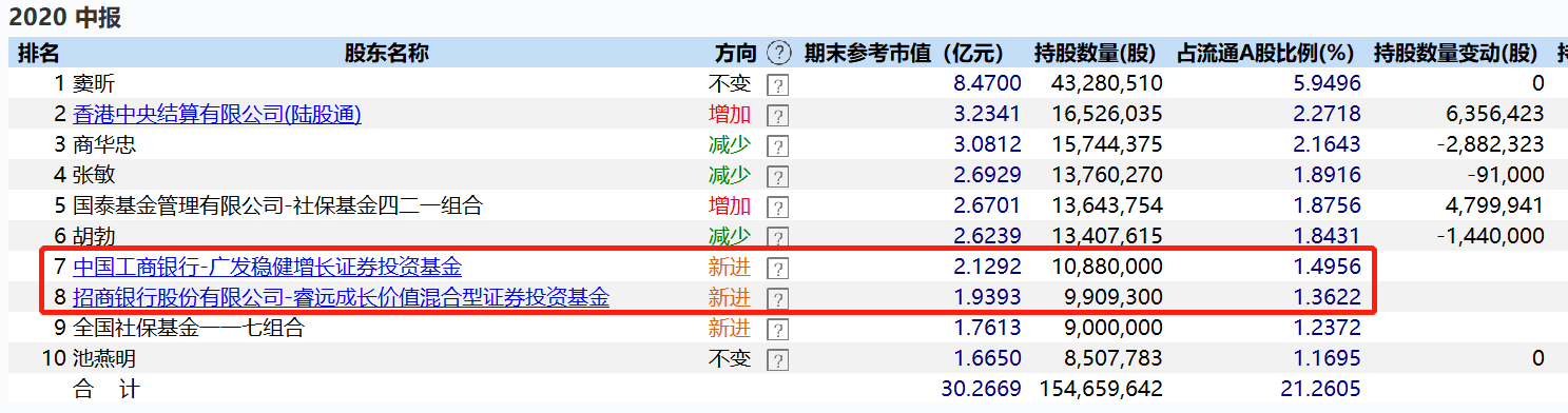2020年中报显示,傅友兴管理的广发稳健增长、傅鹏博管理的睿远成长价值均大举买入该个股,位列第七、第八位流通股东。其中,傅友兴持股达1088万股,期末参考市值高达2.13亿元,占流通A股比例为1.5%。傅鹏博持股则达990.93万股,期末参考市值高达1.94亿元,占流通A股比例为1.36%。