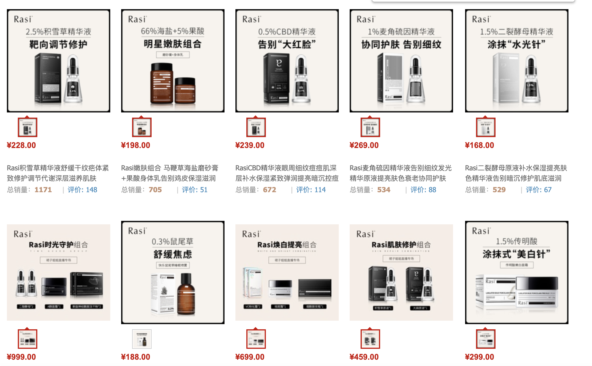 此外,在产品外包装上Rasi也倾向于将产品的功效性和成分浓度罗列出来,以突出其专业性和科学性。