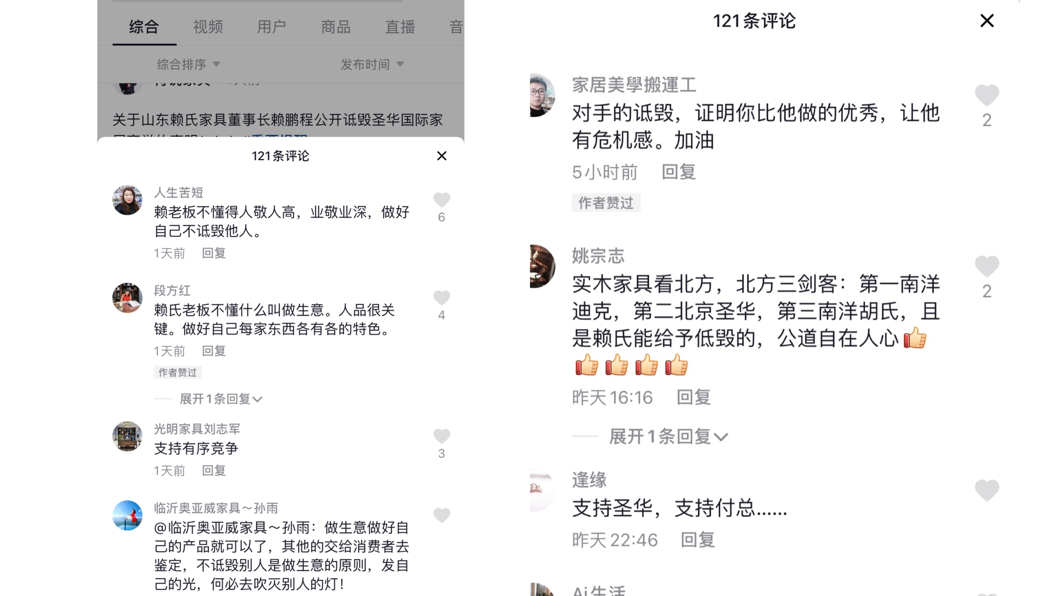 日前,赖氏家具董事长赖鹏程公开诋毁竞争对手圣华家具一事,在网络上引起热议。