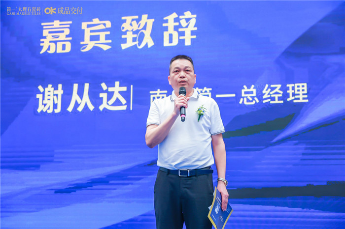 在简一大理石瓷砖成品交付服务发布会上,广西建筑装饰协会副秘书长/施工委主任谭谦上台做致辞,谭谦表示对简一的成品交付OK服务表示高度认可,他认为简一品牌能成为陶瓷行业的佼佼者,是持续践行“创新发展“的结果。创新是简一企业发展的灵魂。从产品制造到售后服务,到今天提出的成品交付,简一用科技创新推动了行业发展,是制造型企业向服务型企业转型的引领者。