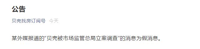 贝壳回应:“被市场监管总局立案调查”的消息不实