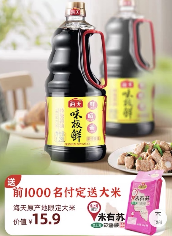 近日,海天味业天猫官方旗舰店中出现了一款随酱油赠送的大米产品。该旗舰店客服人员告诉界面新闻,这是海天新出的产品,目前还没上架销售,仅作为预售活动赠品赠送。