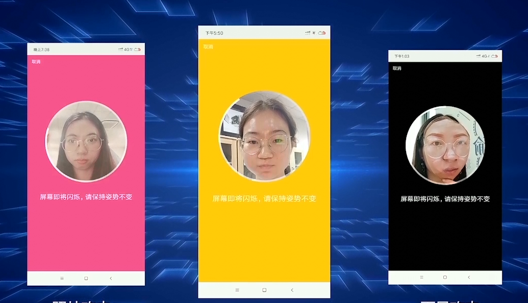 “以前活体认证需要用户做一些动作,现在用随机光线进行检测,用户不需要摇头、不需要动,只需对着屏幕就可以了,这也是国际首创的活体认证。”