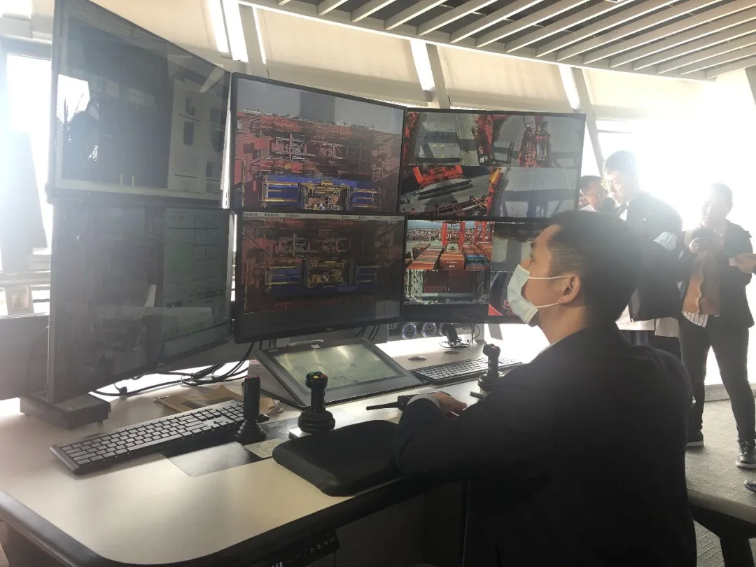 工作人员是原来坐在60米高的桥吊上的码头工人,现在,他们可以坐在办公室里远程监控着码头上的每一个细节,按需进行人机协同。