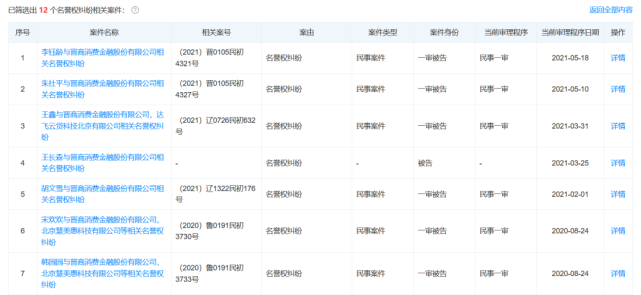 据天眼查案件统计显示,晋商消费金融的相关名誉权纠纷案约有12件,在案由统计中占据第7位。其中一案件在2018年12月进行了二审判决,原告要求法院依法判令晋商消费金融消除原告个人信用报告上所描述的逾期个人消费贷款记录,同时诉讼费由被告承担。一审法院驳回原告诉讼请求,二审法院维持原判。