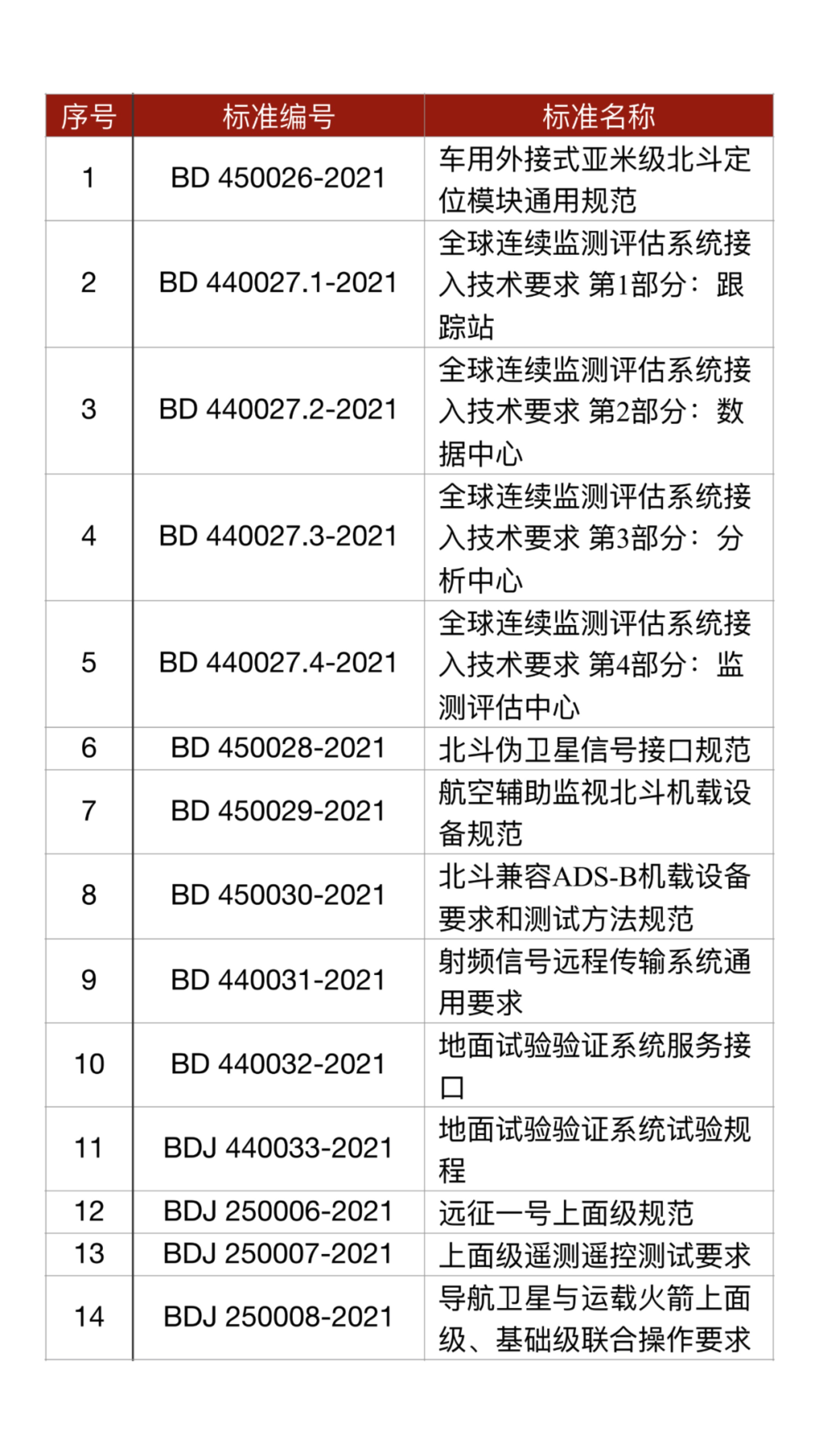 据“中国北斗卫星导航系统”微信公众号5月26日消息,中国卫星导航系统管理办公室于5月25日关于发布《车用外接式亚米级北斗定位模块通用规范》等14项北斗专项标准的公告:根据北斗卫星导航标准化工作计划,现将批准的《车用外接式亚米级北斗定位模块通用规范》等14项北斗专项标准予以发布。