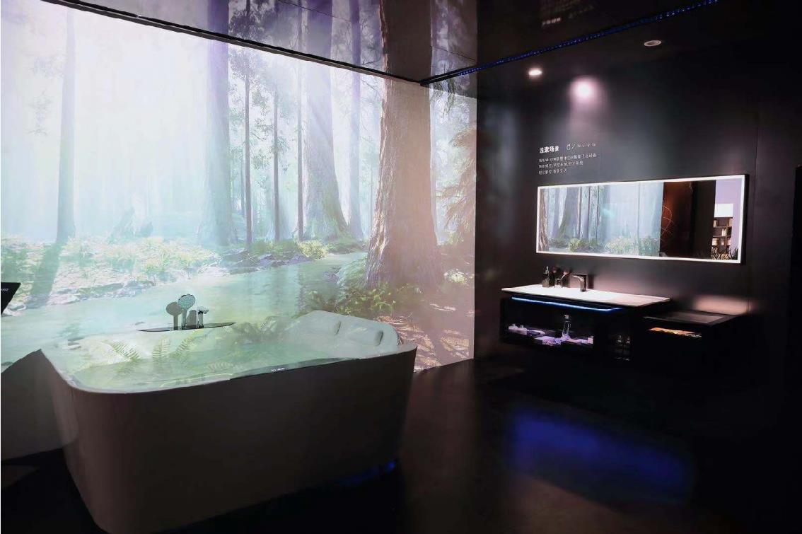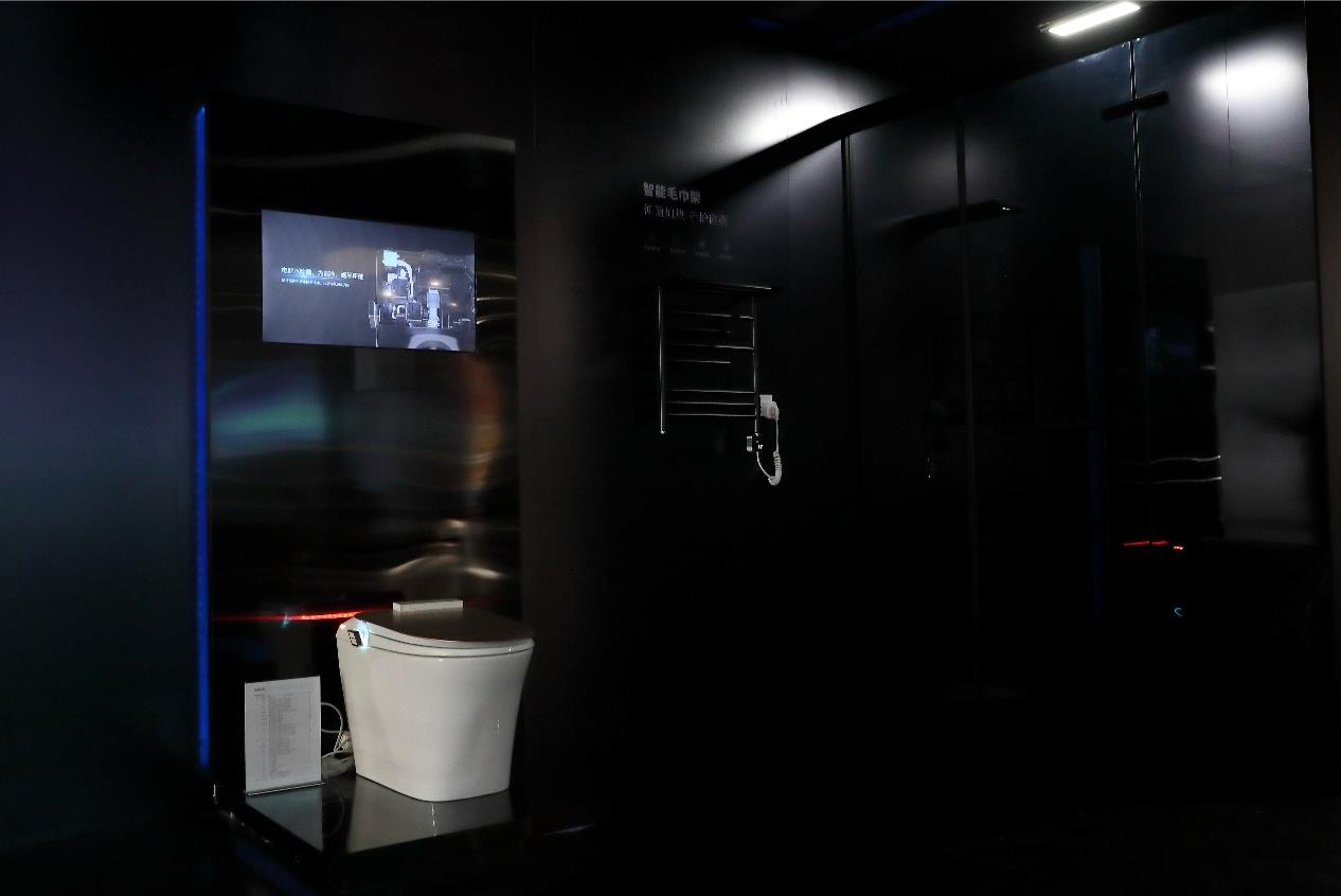 其中最引人注目的要数帝王洁具智+系列IOT智慧空间,根据卫浴空间的各种使用场景,构建了一套完整的沉浸式场景解决方案,比如人近灯亮,人走灯熄,靠近马桶自动开盖,用完后,自动冲水等,让用户得以亲身体验丰富的智慧生活。