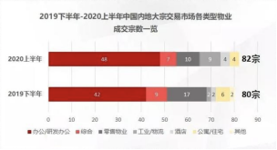 据安居客发布的《2020上半年商业地产大宗交易报告》显示,上半年部分城市的商办类资产价值或被低估,商业地产大宗交易量热度提升。而据戴德梁行数据,写字楼依然最受机构投资者青睐,成交金额约占2020年上半年成交总额的68%。成交宗数占比各类型物业的58%。