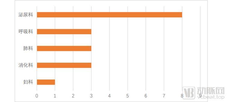 从一次性内窥镜的使用场景看,有着明显的偏重。其中,泌尿科数量最多,其次是呼吸科、消化科和肺科,具体如下图。
