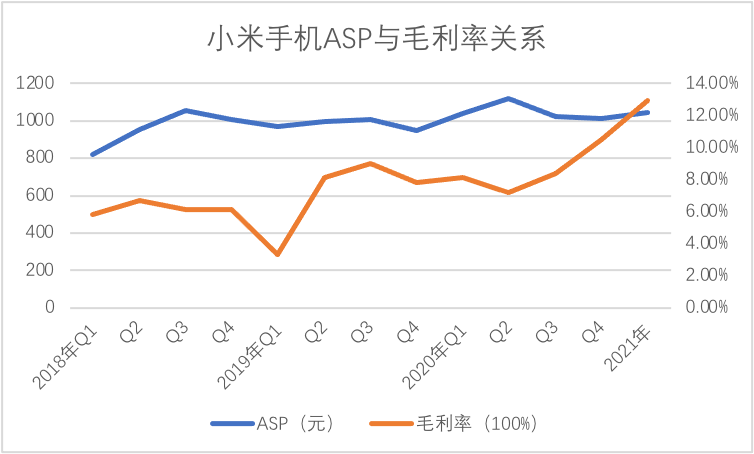 在上图中,虽然小米手机业务ASP与毛利率偶呈正相关性,但拉长时间周期,两组曲线的规律性就相当之弱了,综合前文所述PPI对毛利率干扰性,我们不难发现,在2020年Q3之前,决定毛利率的并非ASP,而是PPI。