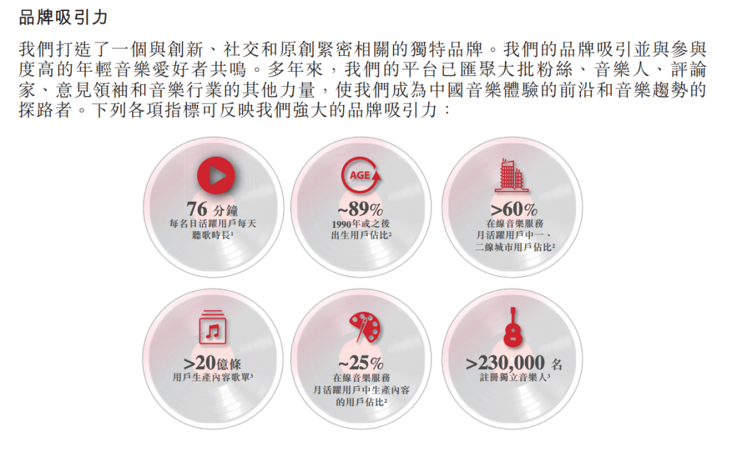 招股书披露数据显示,目前网易云音乐约9成活跃用户为90后。此前公开信息也显示平台95后00后音乐人占比超7成。这一方面是网易云音乐飞轮效应的例证,同时也解释了其在年轻市场的明显优势。