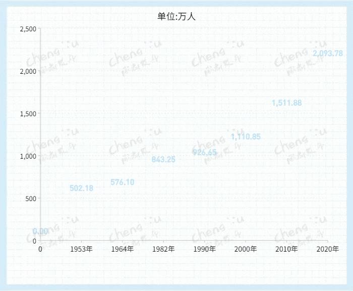 成都市统计局数据显示:成都常住人口为20937757人。与2010年第六次全国人口普查相比,增加5818917人,增长38.49%,年平均增长3.31%。