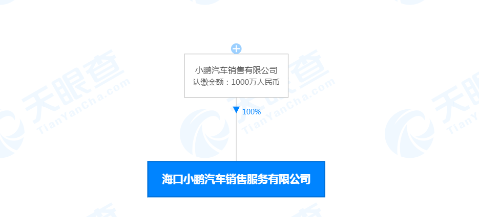 据天眼查APP显示,5月26日,海口小鹏汽车销售服务有限公司成立,法定代表人朱艳华,注册资本1000万人民币,经营范围包括新能源汽车整车销售;汽车租赁;汽车零配件批发;新能源汽车电附件销售;新能源汽车换电设施销售;充电桩销售;二手车经销等。股东信息显示,该公司由小鹏汽车销售有限公司全资控股。