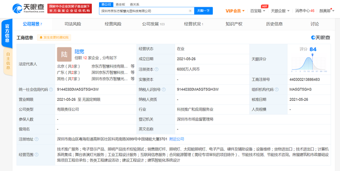 据天眼查APP显示,5月26日,深圳市京东方智慧光显科技有限公司成立,法定代表人为陆宽,注册资本6000万人民币,经营范围包括计算机系统集成;舞台表演灯光服务;工业工程设计服务;互联网信息服务;合同能源管理等。股东信息显示,该公司由京东方智慧科技有限公司、深圳市前海洲明投资管理有限公司共同持股,持股比例分别为60%、40%。