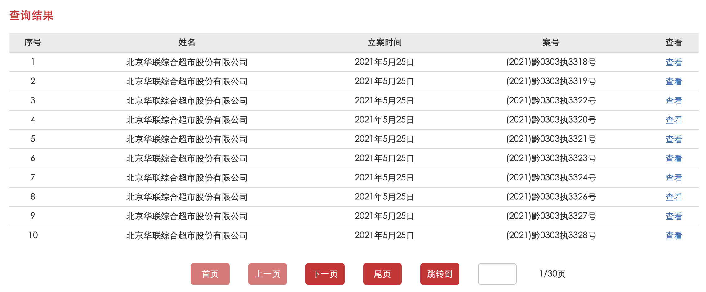中国执行信息公开网5月27日消息,2021年5月21日以来,北京华联综合超市股份有限公司新增多条被执行人信息,执行法院均为遵义市汇川区人民法院,执行标的包括11433元、1376元等。截至目前,该公司累计被执行总金额超138万。